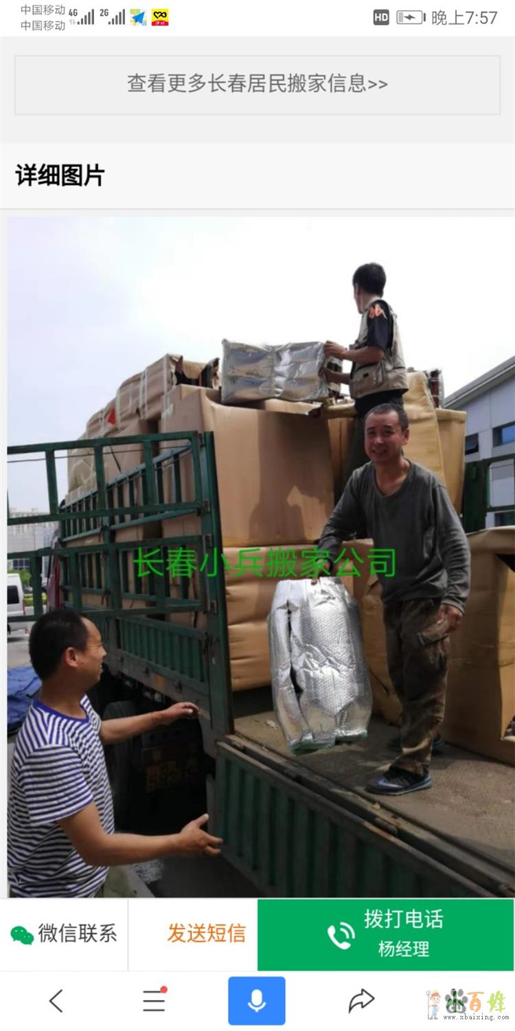 长春小兵搬家公司成立以来,随叫随到,快捷准时的搬场特在全市设立了多个分部,正规长春搬家公司无论您在全市的那个区镇,在我们接到您的电话预约后,都能够就近派车,让您享受最优质的服务,最低廉的价格. 服务范围: 1:写字楼,商务楼,酒店,宾馆,企事业单位的大规模搬迁服务. 2:居民搬家,物流配送,长短途运输服务. 3:配套服务:拆装空调,家具,居民搬家. 长春小兵搬家公司电话居民搬场:服务宗旨:提供"服务称心,质量放心,搬运省心"的优质搬家服务. 长春小兵搬家公司宗旨:不收小费,不损坏东西,不吸客烟,不接受招待,做到准时准点,轻装轻卸.www.xbaixing.com